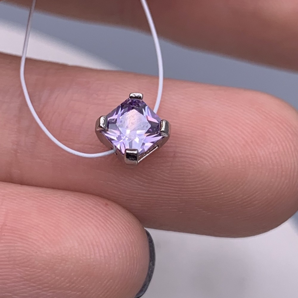 Бусина, разделитель, вставка фиолетовый цирконий, модель 925, покрытие родий, размер 5,5 мм, цена за 1 шт.