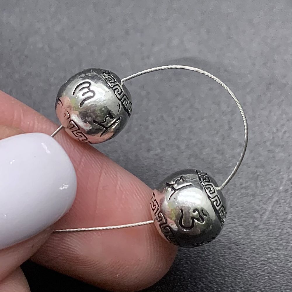Бусина, с мантрами, тайское серебро, шарик 11 мм, цена за 1 шт.
