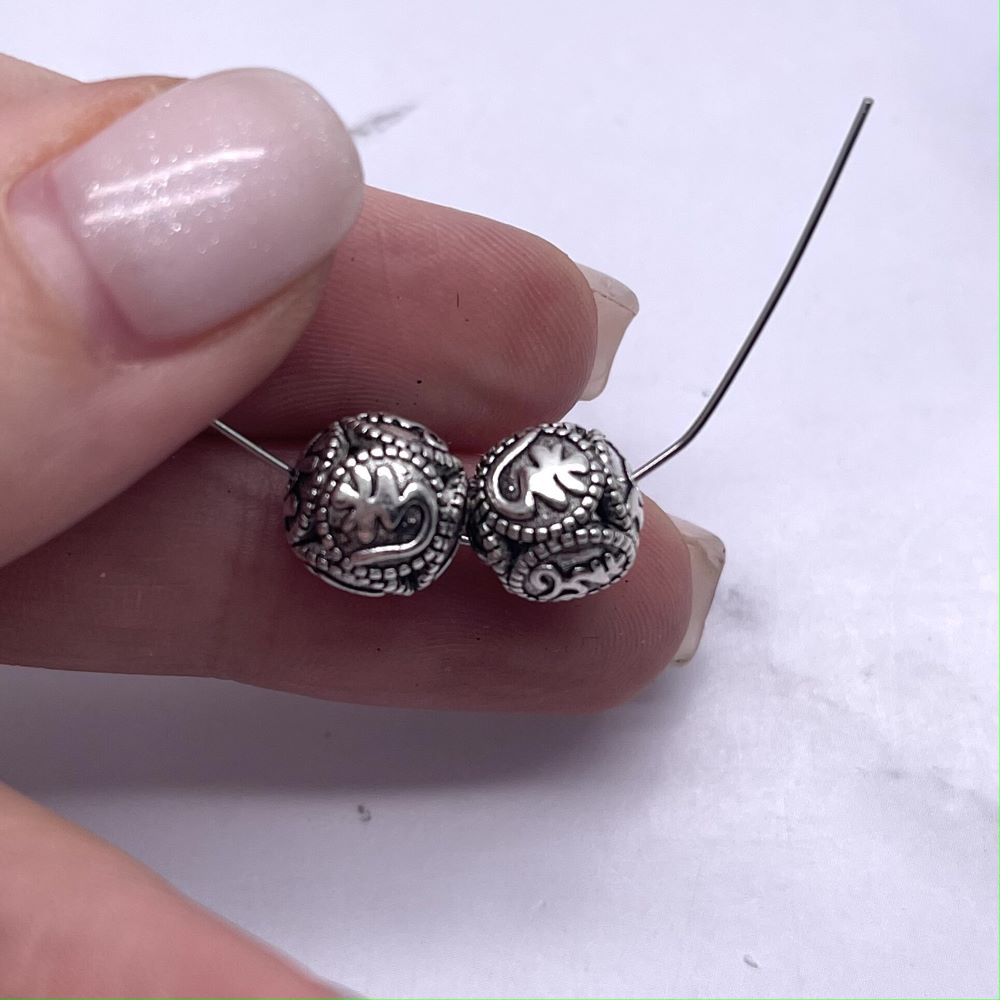 Бусина, "Мантры", тайское серебро, размер 10 мм, цена за 1 шт.