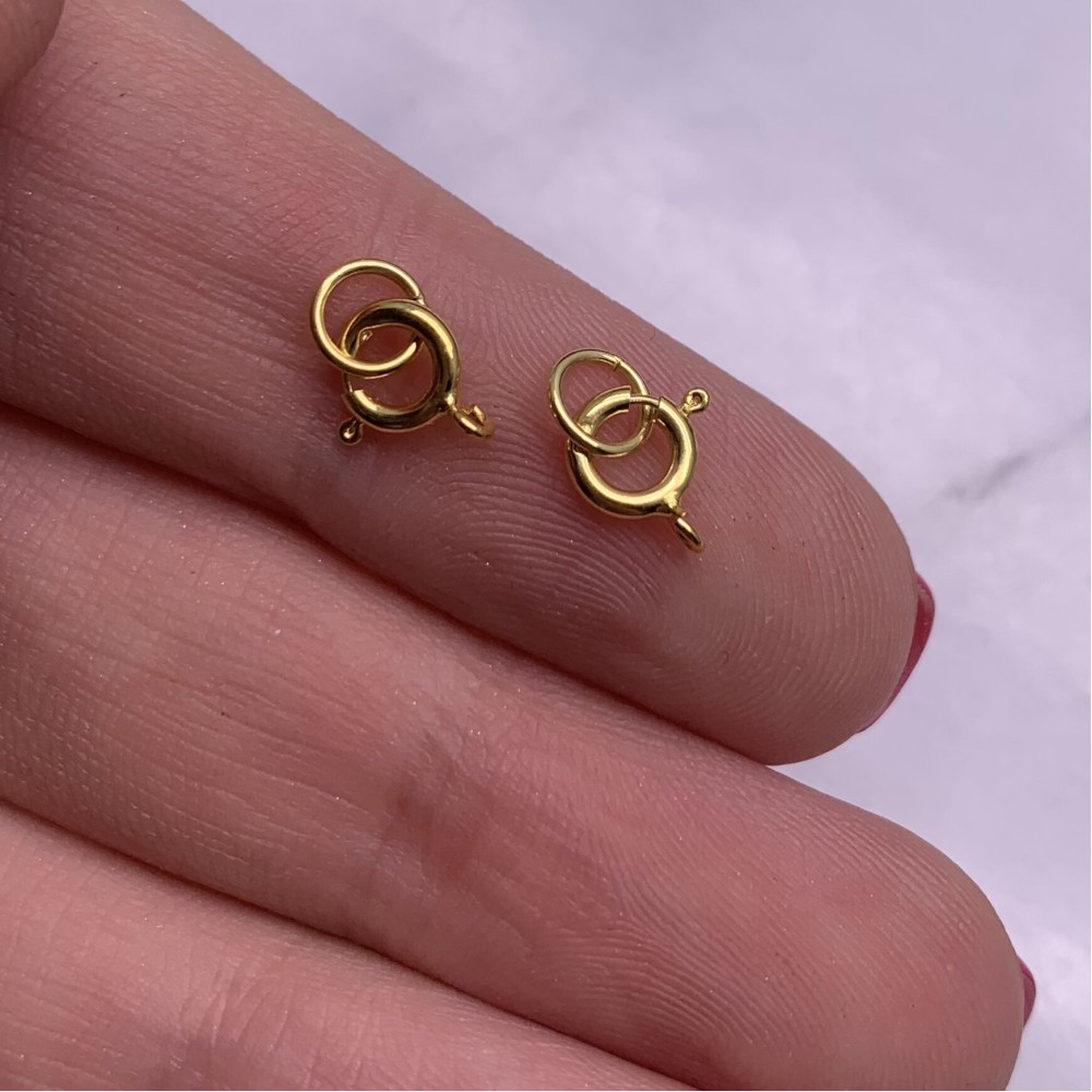 Карабин - шпрингель, родированное серебро 925 пробы, с позолотой, 5 мм, цена за шт