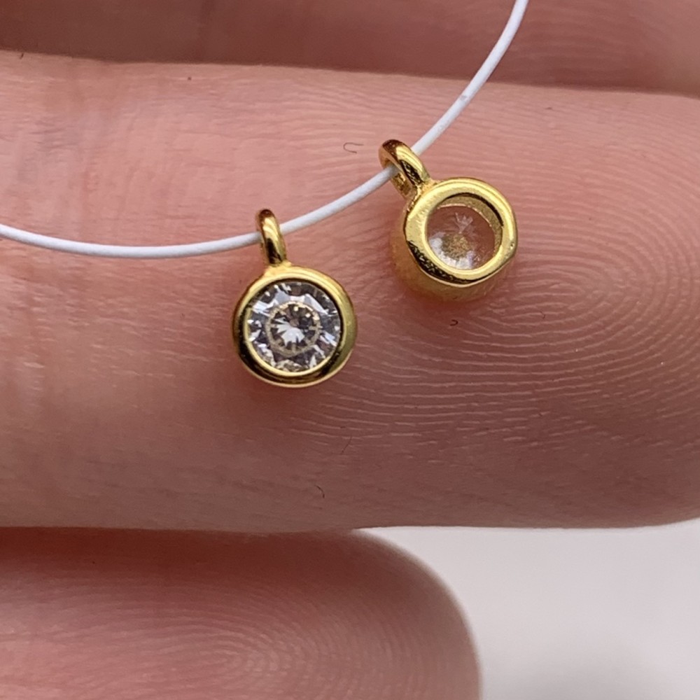 Подвеска, вставка цирконий, модель 925, покрытие родий с позолотой, размер 4 мм, цена за 1 шт.