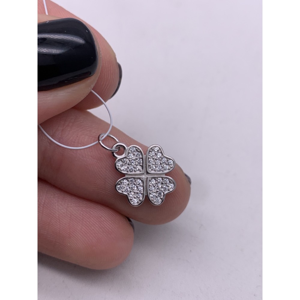 • Подвеска "Клевер", с цирконами, модель 925, покрытие родий, размер 11,7 мм, цена за 1 шт.