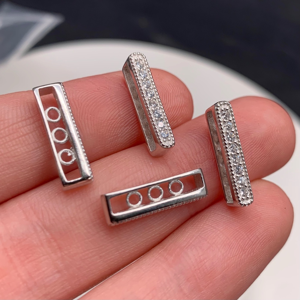 Разделитель, с фианитами, родированное серебро 925 пробы, на многорядное украшение, размер 5x12мм