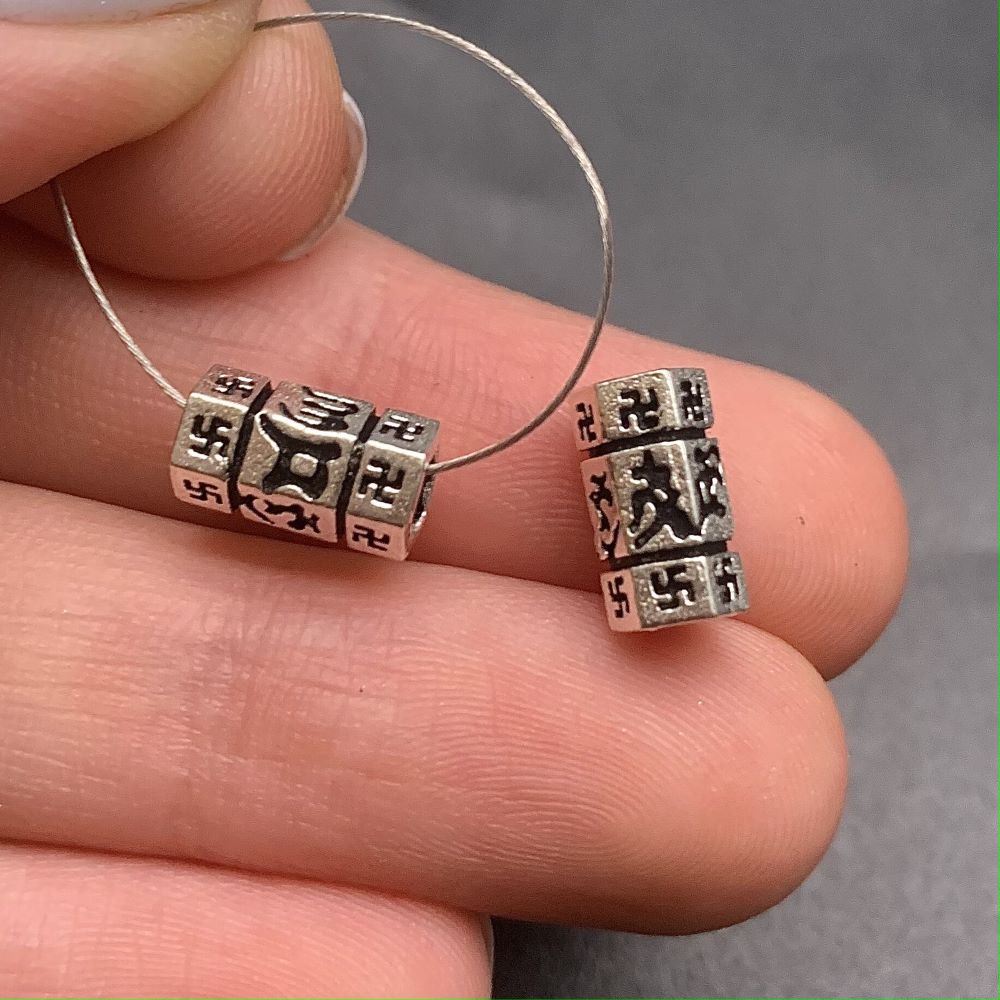 • Разделитель, с мантрами, из тайского серебра (широкое отверстие), размер 10,8х6,5 мм
