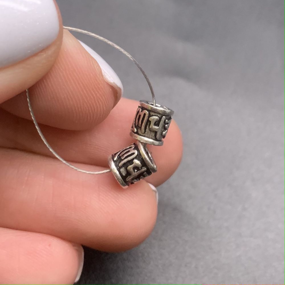 Разделитель, с мантрами, тайское серебро (широкое отверстие), размер 6х6,5 мм, цена за 1 шт.