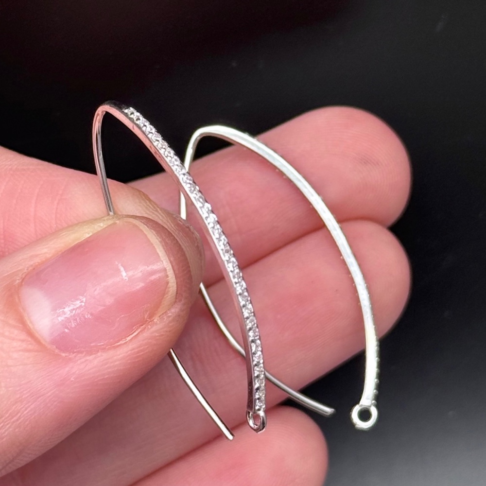Теги: Швензы, крючок, с циркониями, покрытие родий, модель SS 925, размер 38х2 мм, цена за пару, 21365, Швензы (s925)