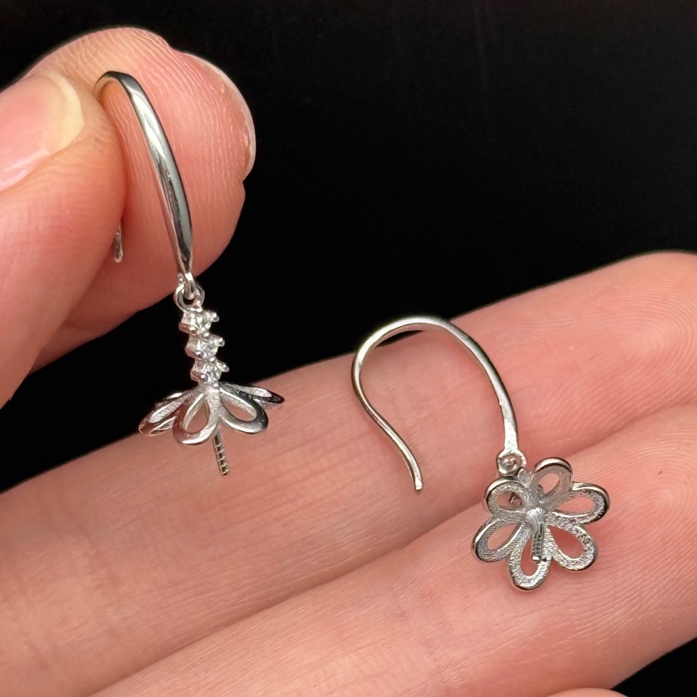 Швензы, крючок, с штырем под вклейку, с циркониями, покрытие родий, модель SS 925, размер 27х1,5 мм, цена за пару