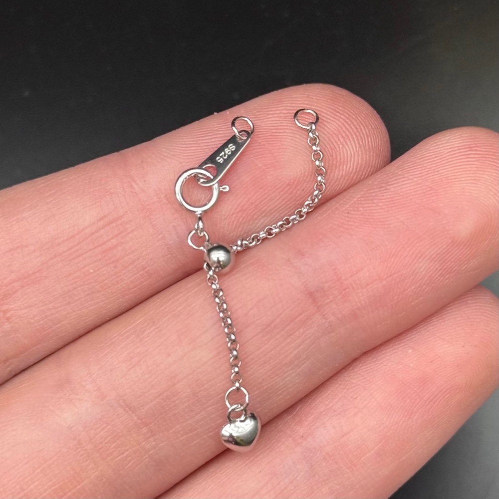 Карабин, замочек, шпрингель, с цепочкой удлинительной, покрытие родий, модель SS 925, длина 4 см, подвеска сердечко, силиконовый фиксатор 0 350 ₽
