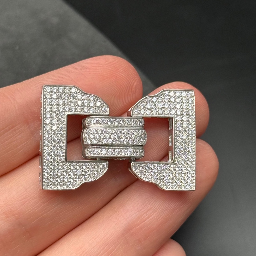 • Замочек, многорядный, с циркониями, модель 925, покрытие родий, 32х22 мм, цена за шт