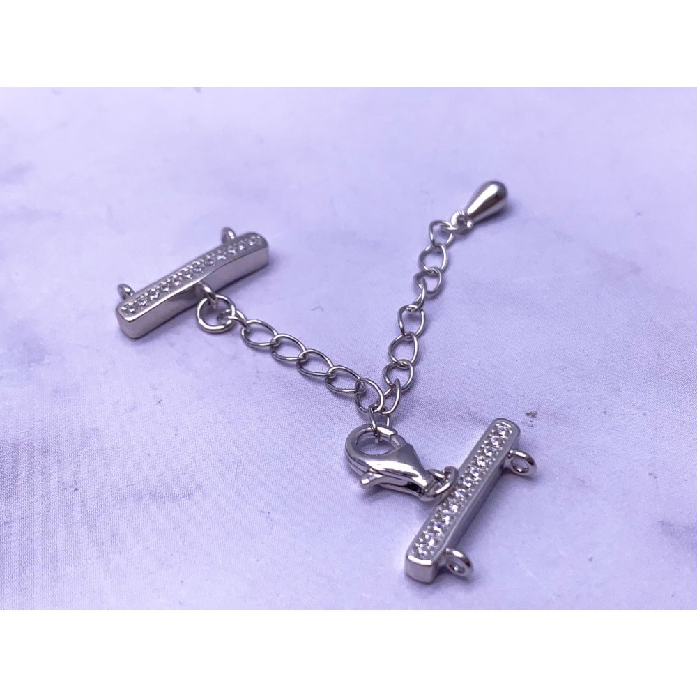 • Замок, двухрядный, вставка цирконии, модель 925, покрытие родий, 15х2,5 мм, карабин 8 мм, с удлинителем 50 мм, цена за шт