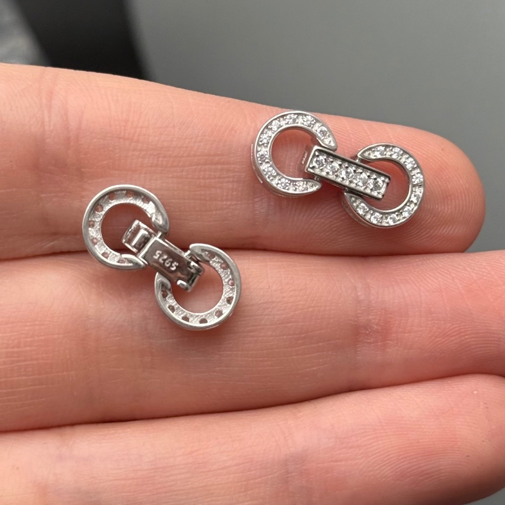 Замок, круглый, модель SS 925, с циркониями, покрытие родий, размер 19х9 мм, цена за 1 шт