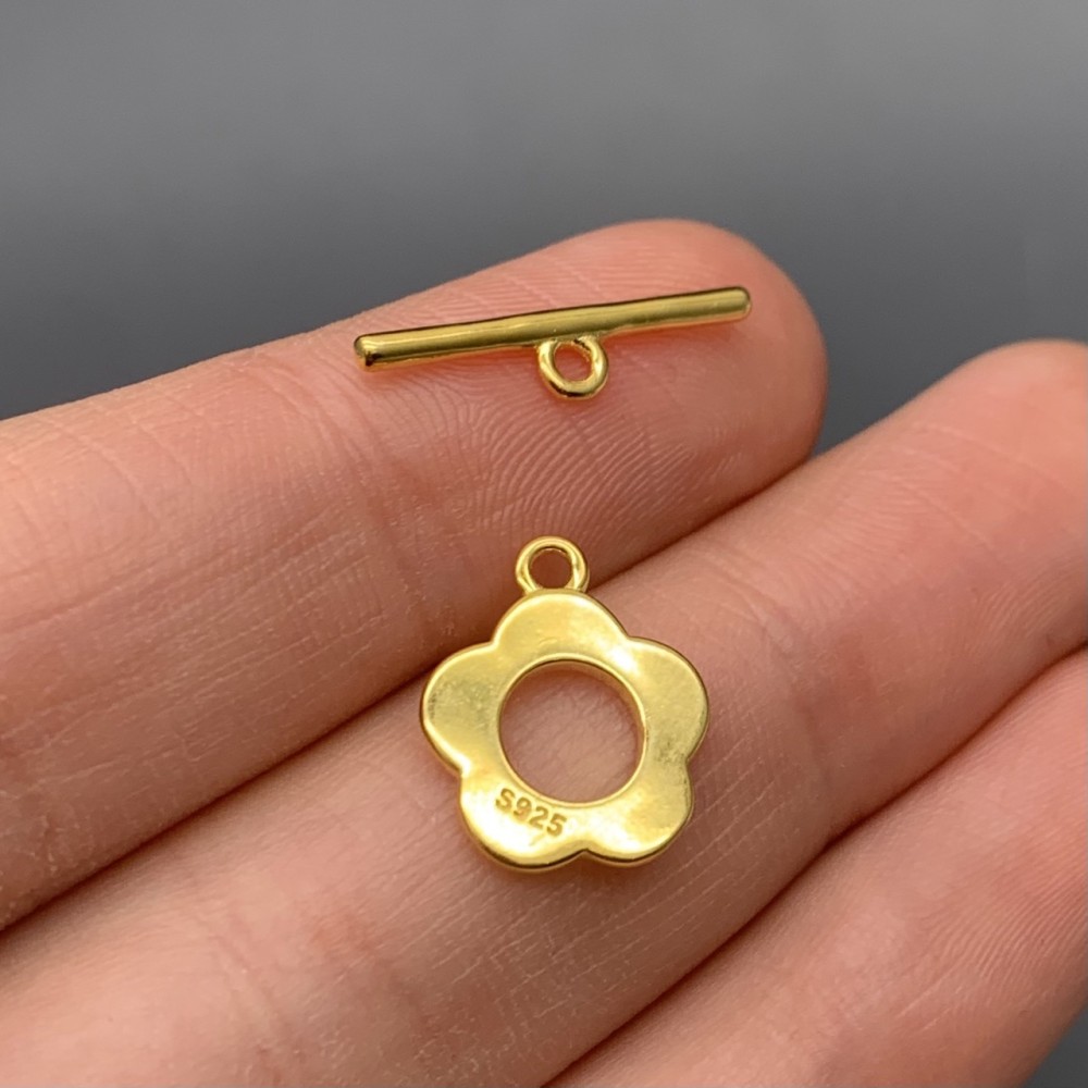 Замочек, тогл, "цветок", модель 925, покрытие позолота, размер 12 мм, палочка 20 мм, цена за шт.