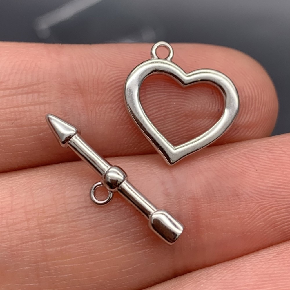 Замочек, тогл, "сердце", модель 925, покрытие родий, размер 15 мм, палочка 21 мм, цена за шт.