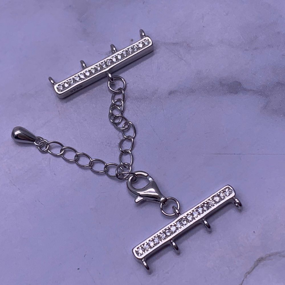 Замок, четырехрядный, вставка цирконии, модель 925, покрытие родий, 20х3 мм, карабин 8мм, с удлинителем 50 мм, цена за шт 0 1200 ₽