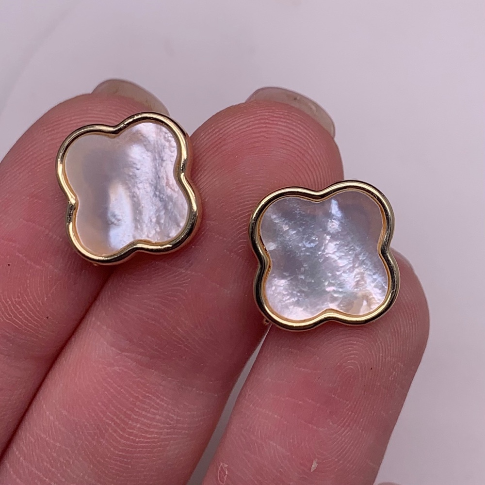 • Швензы, клевер, вставка перламутр, латунь, цвет золото, размер 16х11,5 мм