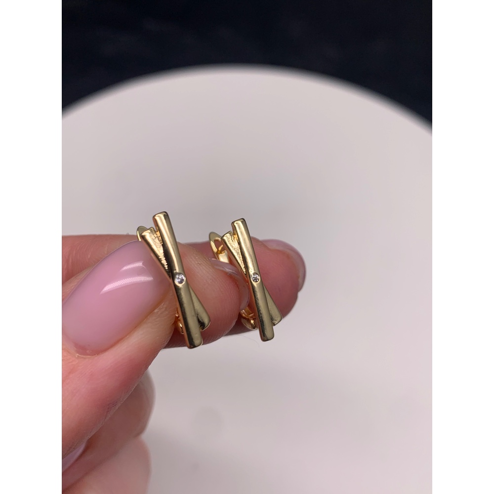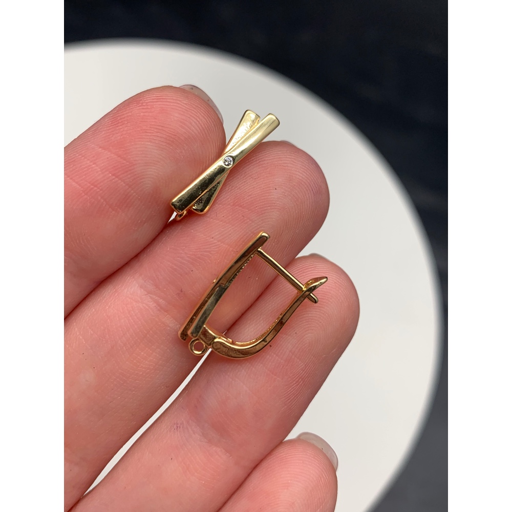 Швензы, вставка фианиты, латунь, цвет золото, размер 19х12 мм