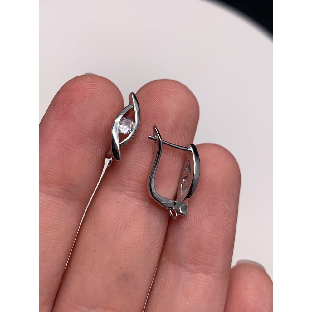 Швензы, вставка фианиты, родий/латунь, цвет серебро, размер 17х12 мм 17918