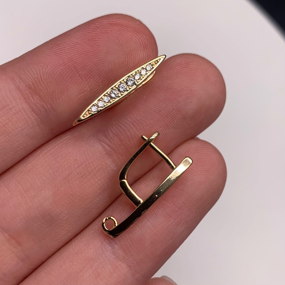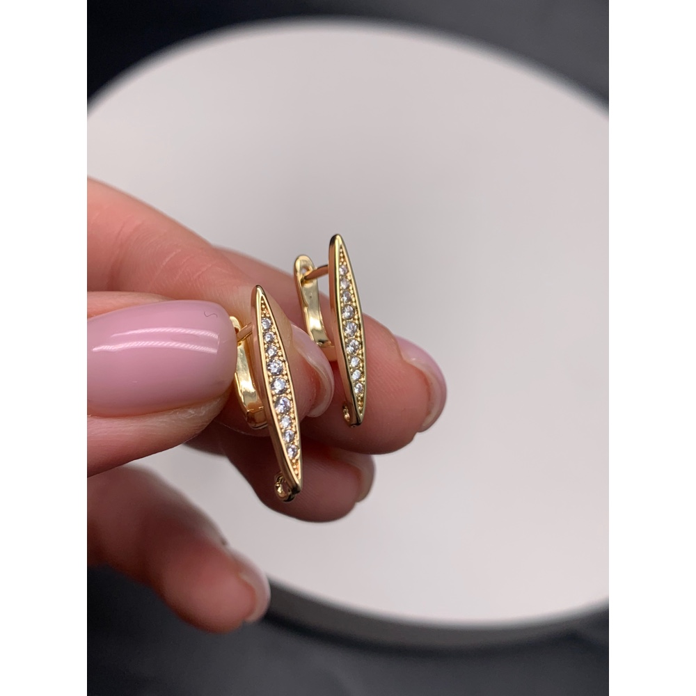 Швензы, вставка фианиты, латунь, цвет золото, размер 20х10 мм