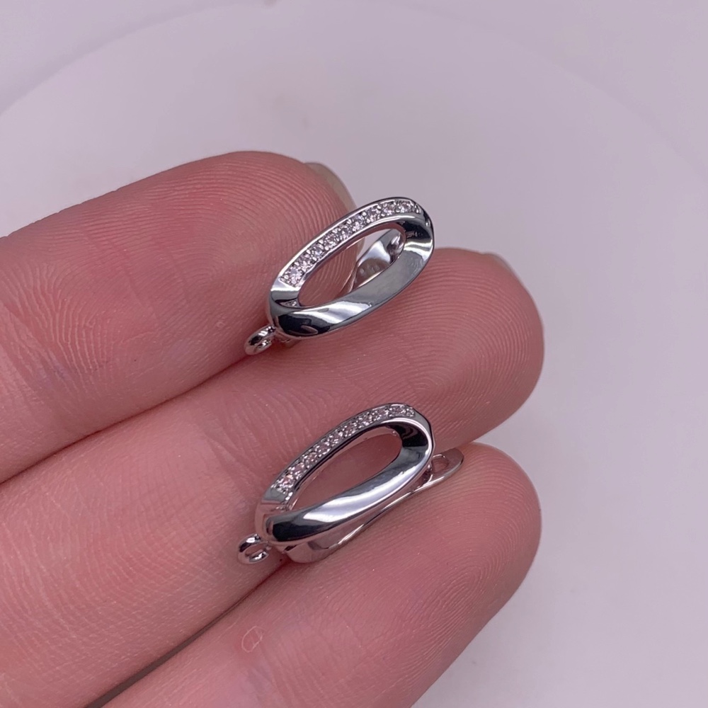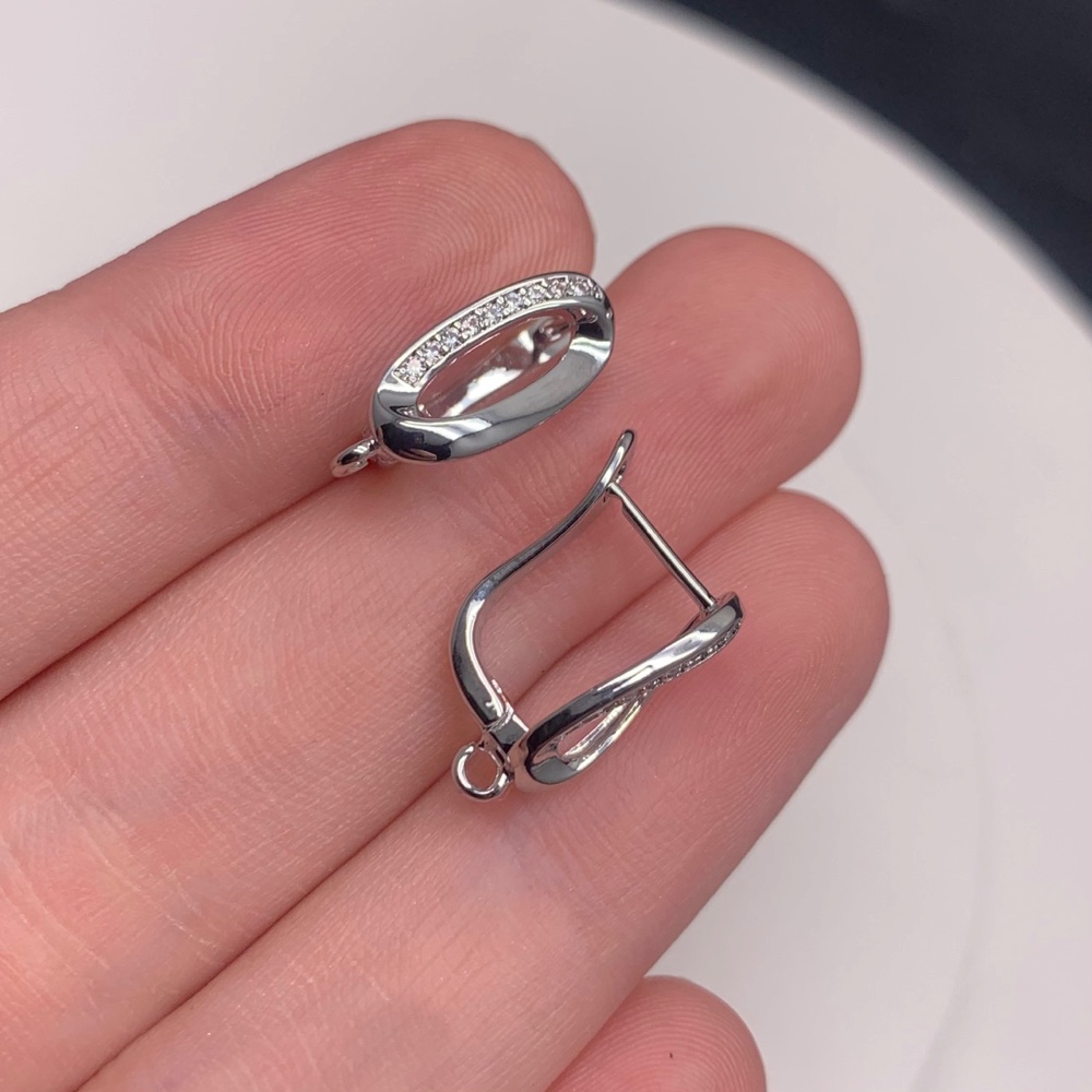 Швензы, вставка фианиты, родий/латунь, цвет серебро, размер 17х11 мм 17788