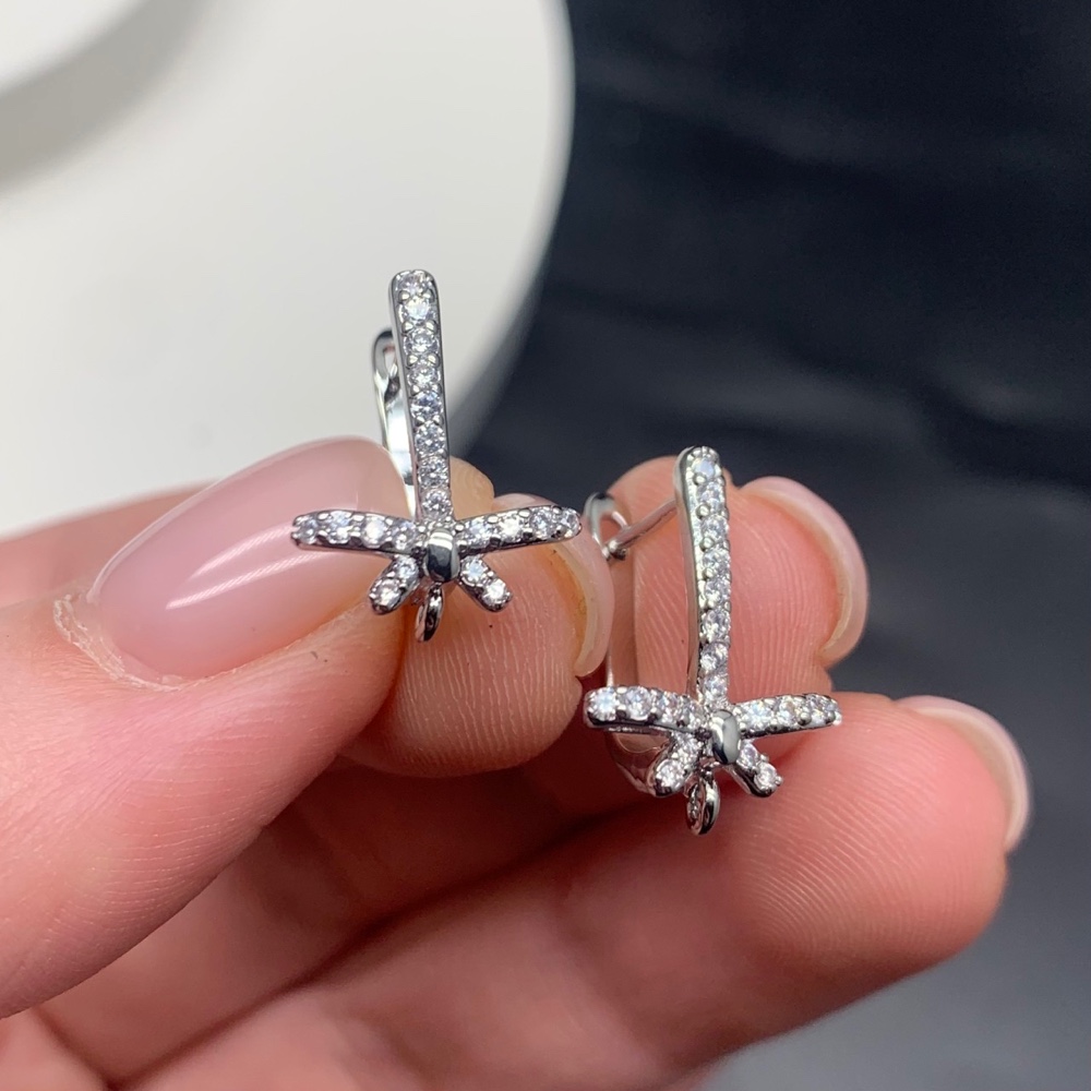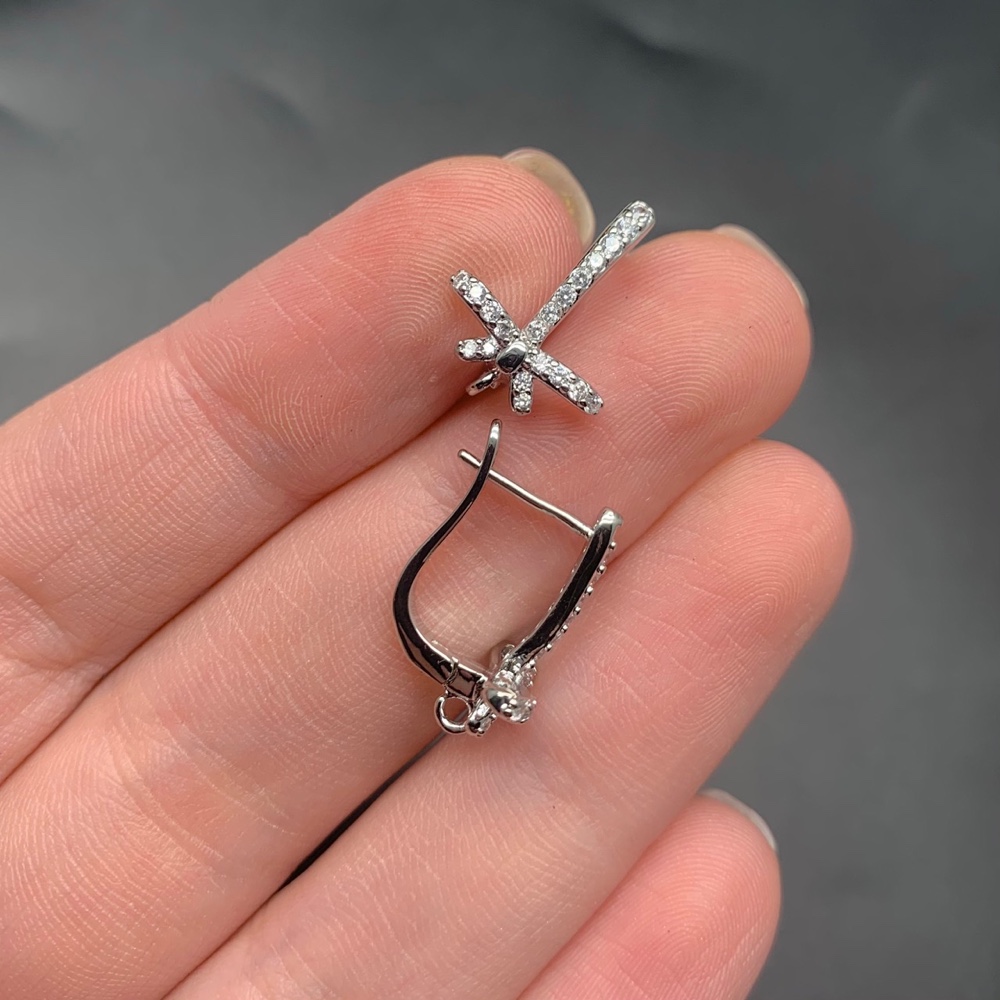 Швензы, вставка фианиты, родий/латунь, цвет серебро, размер 18х12 мм 17794 0 300 ₽