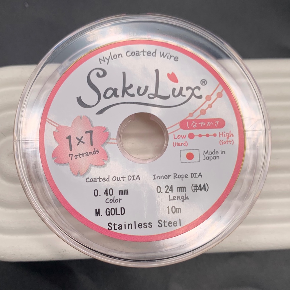 • Тросик ювелирный SakuLux (Япония), 7 стальных струн, с силиконовым покрытием, цвет золото, толщина 0,4 мм, 10 м в катушке