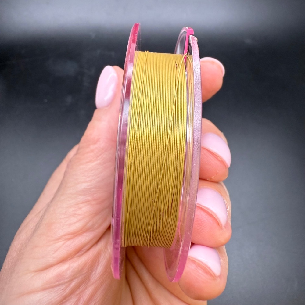 Тросик ювелирный SakuLux (Япония), 49 стальных струн, с силиконовым покрытием, цвет золото, толщина 0,36 мм, 5 м в катушке