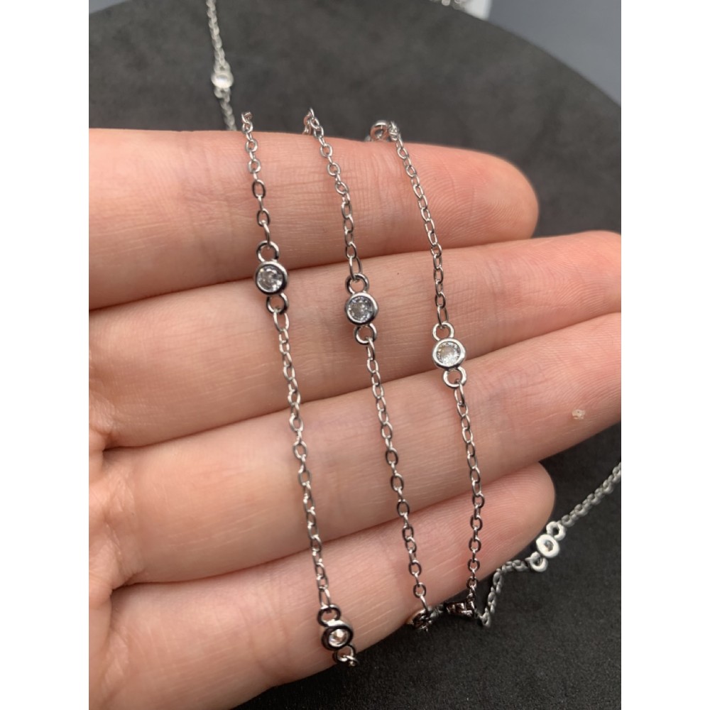 Цепь № 13, с кристаллом, цвет серебро, размер звена 2х2,5 мм, цена за 0,5 метра 0 300 ₽