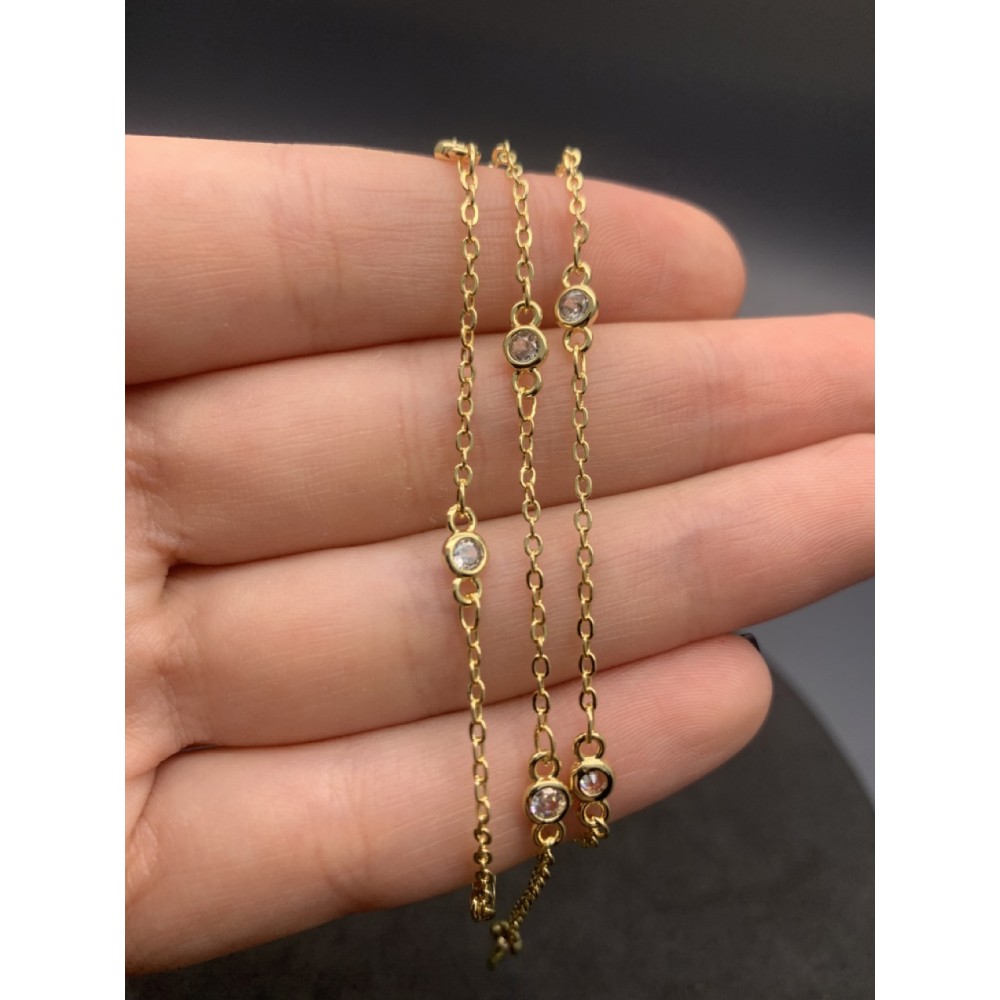 Цепь № 14, с кристаллом, цвет золото, размер звена 2х2,5 мм, цена за 1 метр