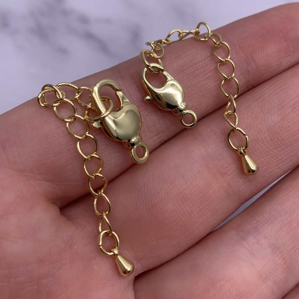 Карабин, замочек, лобстер, латунь, под золото, 17 мм, с удлинителем 45 мм, цена за 1 шт 0 75 ₽