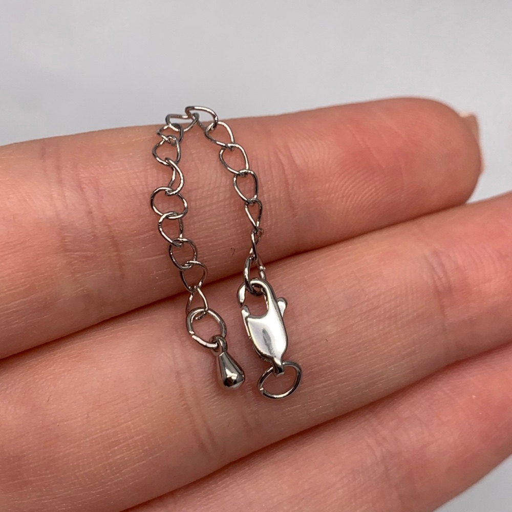 Карабин, замочек, плоский, родий/латунь, под серебро, 10 мм, с удлинителем 50 мм, подвеска капля, цена за 1 шт