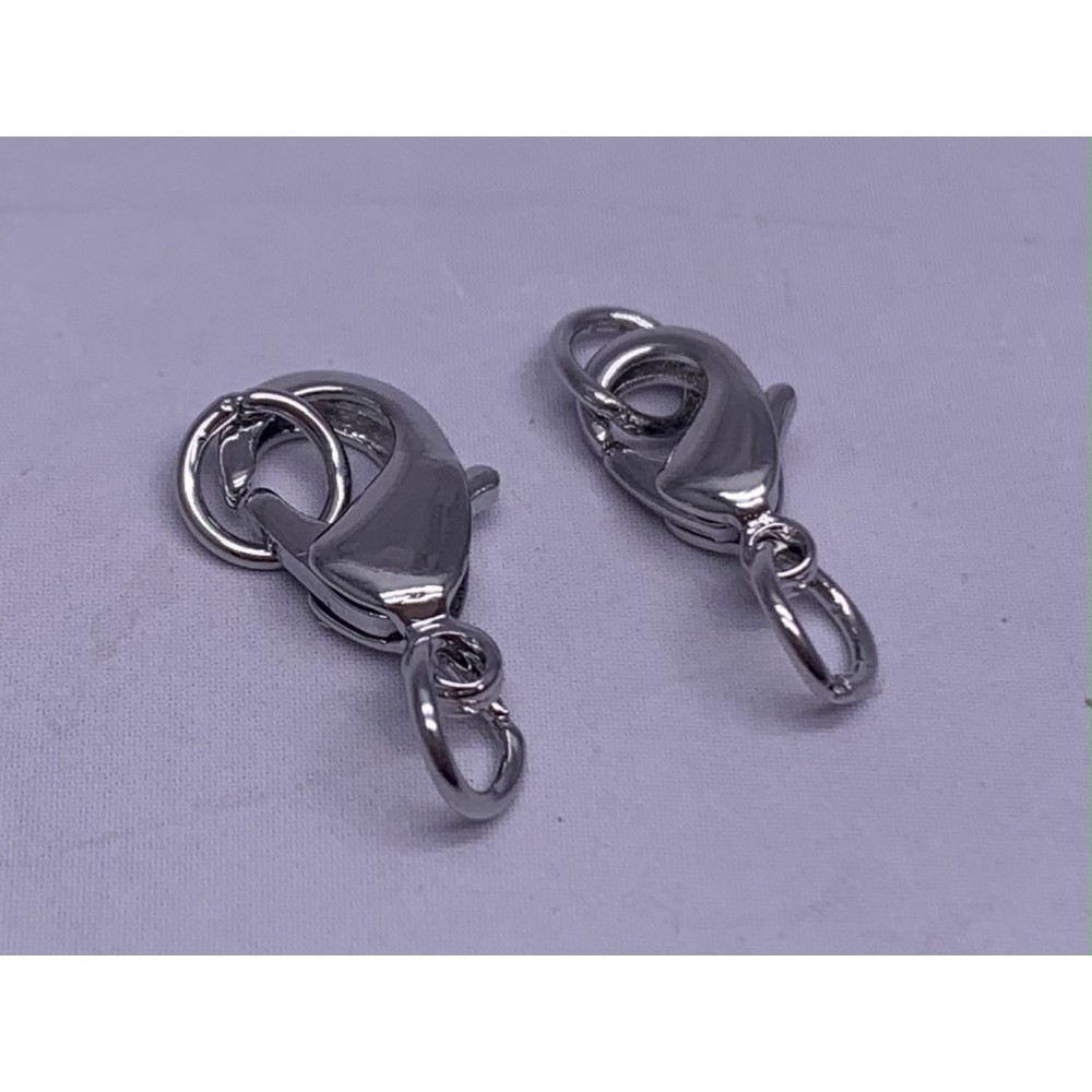 • Карабин, замочек, родий/латунь, под серебро, 12 мм, с соединительным колечком, цена за 1 шт