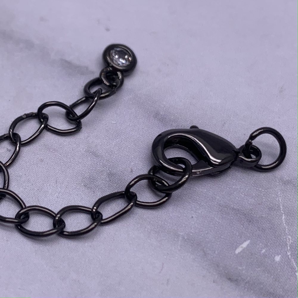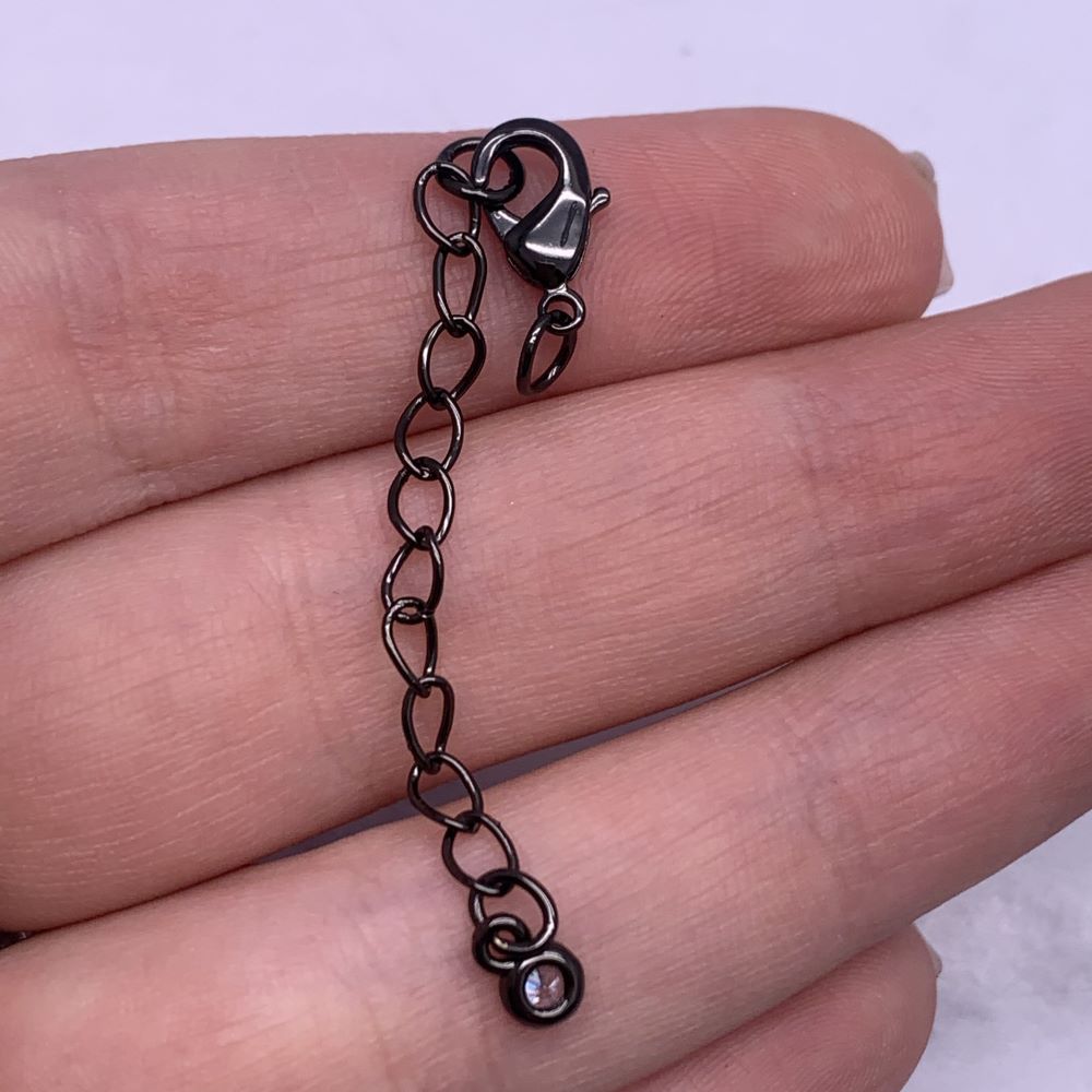 Карабин, замочек, вороненая сталь, 12 мм, с соединительным колечком, с удлинителем 57 мм, с кристаллом, цена за 1 шт 0 70 ₽