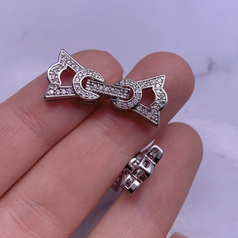 • Застёжка, замочек многорядный, с фианитами, цвет родий, 30х13 мм
