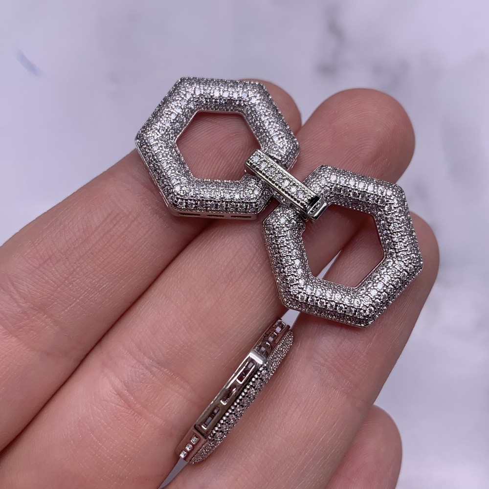 Застёжка, замочек многорядный, с фианитами, цвет родий, 43х23 мм