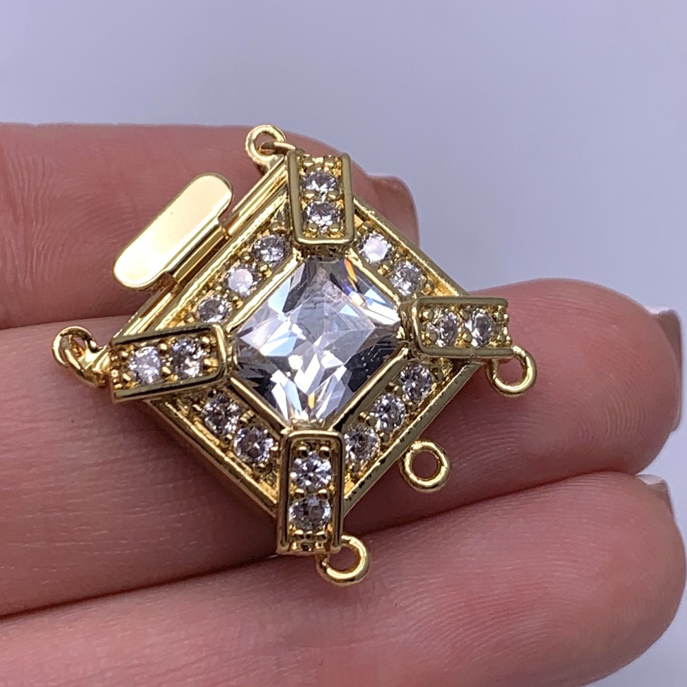 • Застёжка, замочек многорядный, с фианитами, цвет золото, 19х17 мм