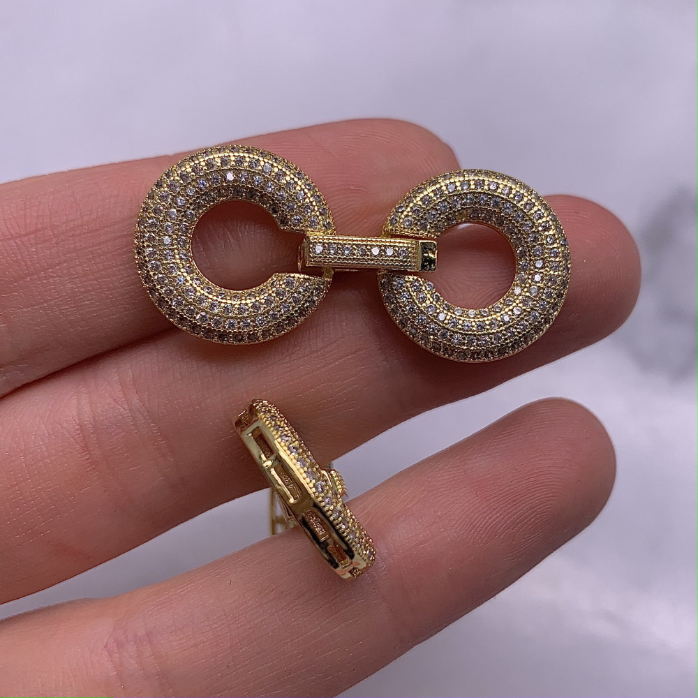 Застёжка, замочек многорядный, с фианитами, цвет золото, 41х18 мм