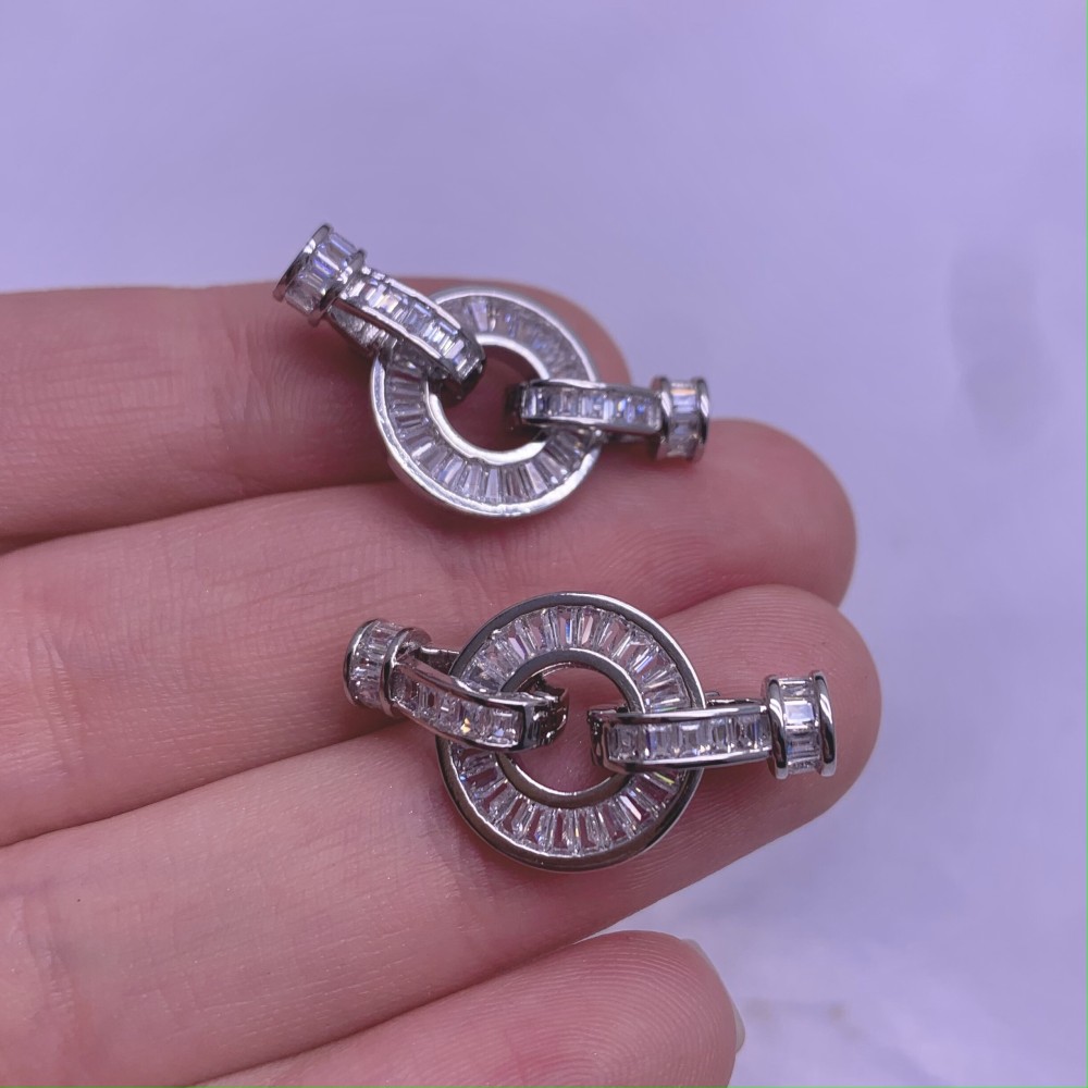 Застёжка, замочек, с фианитами, цвет родий, 27х15мм