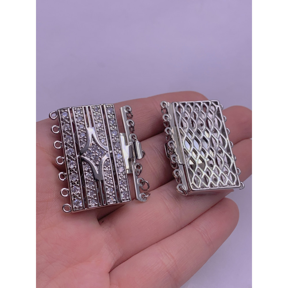• Застёжка, замочек, многорядный, с фианитами, цвет родий, 36х28 мм