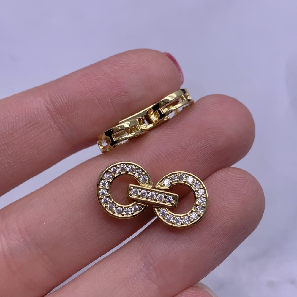 Застёжка, замочек, многорядный, с фианитами, цвет золото, 23х10 мм