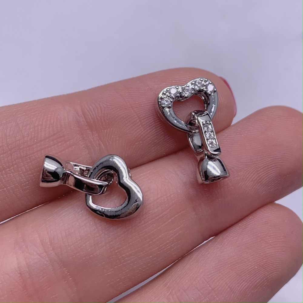• Застёжка, замочек, с фианитами, цвет родий, 17х9 мм