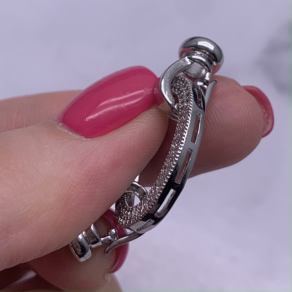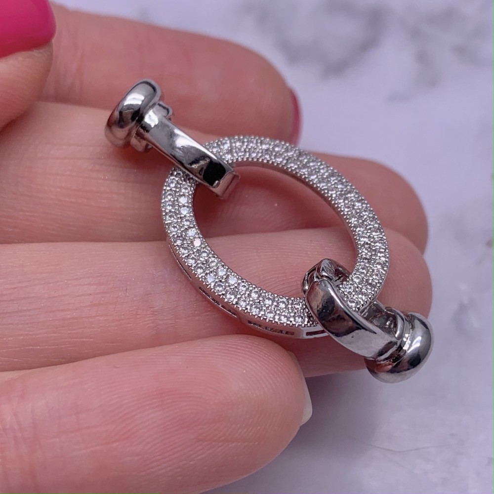 Застёжка, замочек, с фианитами, цвет родий, 40х19 мм