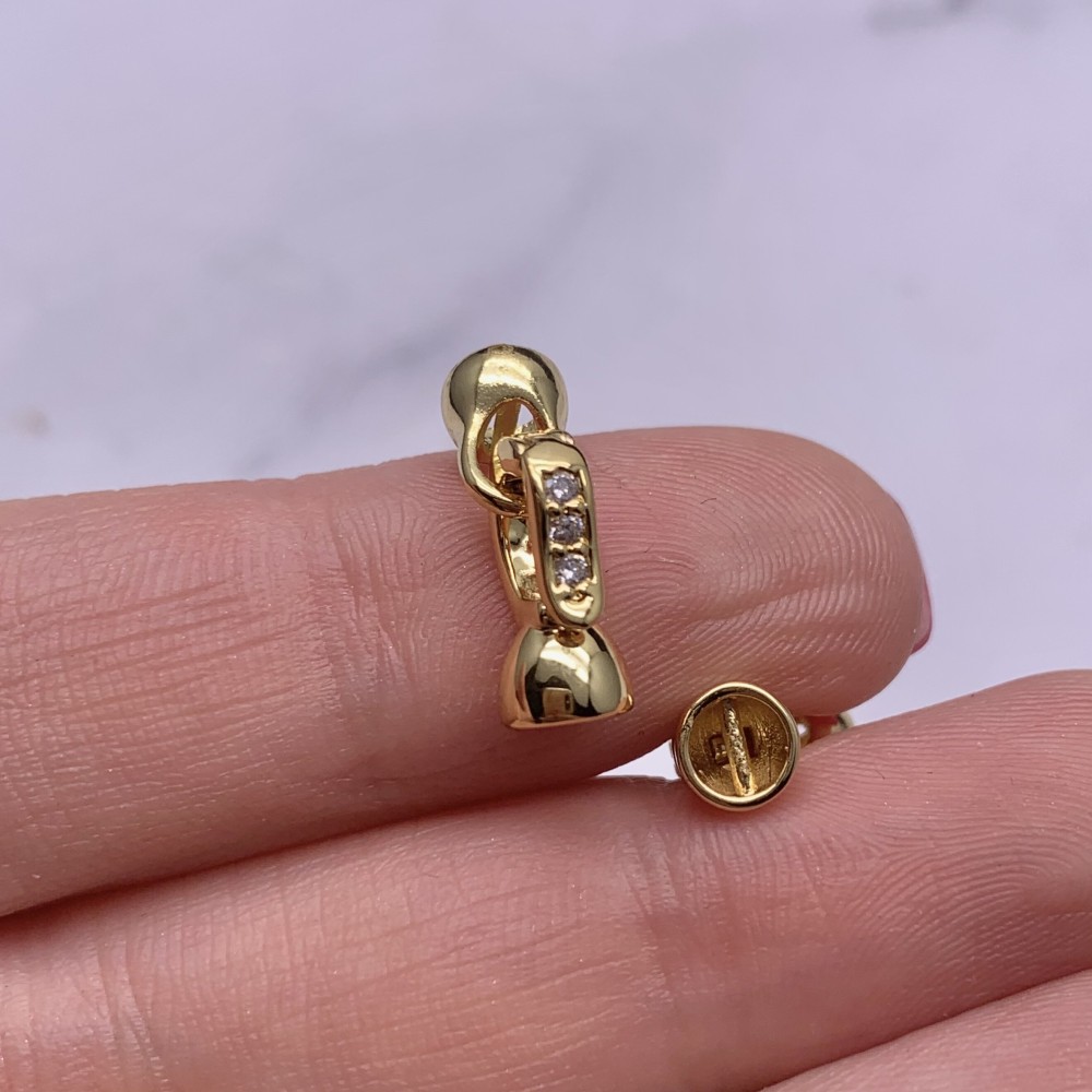 • Застёжка, замочек, с фианитами, цвет золото, 17х6 мм
