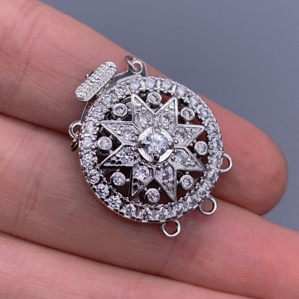 Теги: Застёжка, замочек, многорядный, с фианитами, цвет родий, 21х10 мм, 20177, Замочки