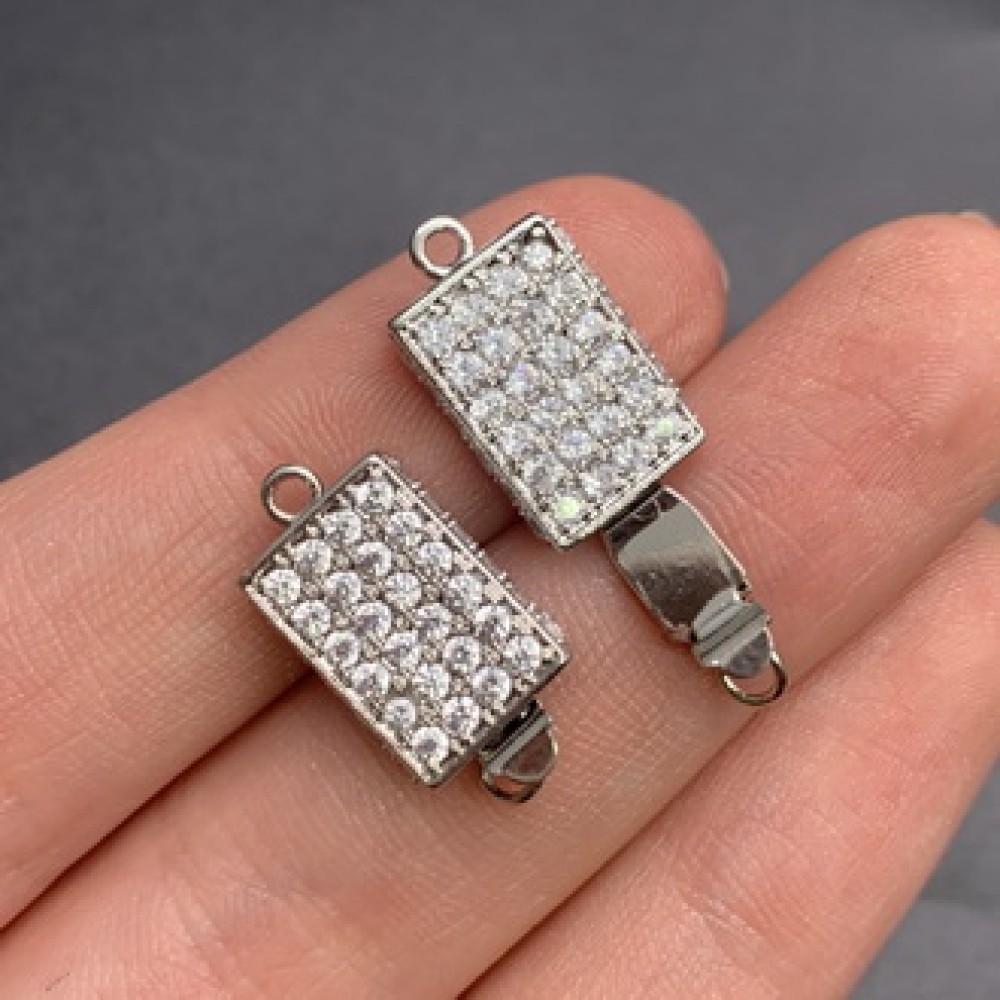 • Застёжка, замочек, с фианитами, цвет серебро/родий, размер 19х10 мм