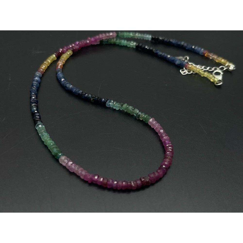 Каменные бусины, Чокер, Микс сапфир, люкс, экстра, рондель, переходный размер до 3х2 мм, длина нити 38 см, с замочком 925