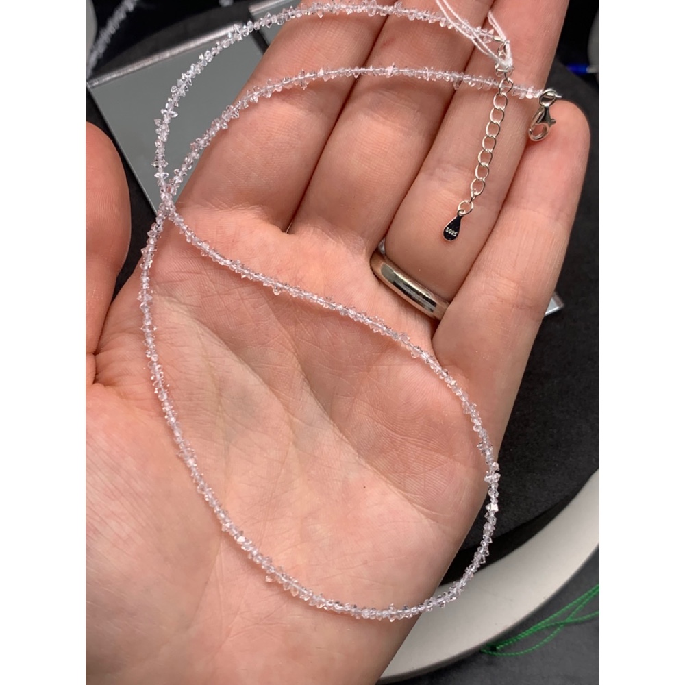 Каменные бусины, Чокер, "Херкимерский алмаз", (Двухвершинный кристалл горного хрусталя), люкс, размер 4х2,5 мм, длина нити 39 см, с замочком и удлинителем 4 см, серебро 925 0 2400 ₽