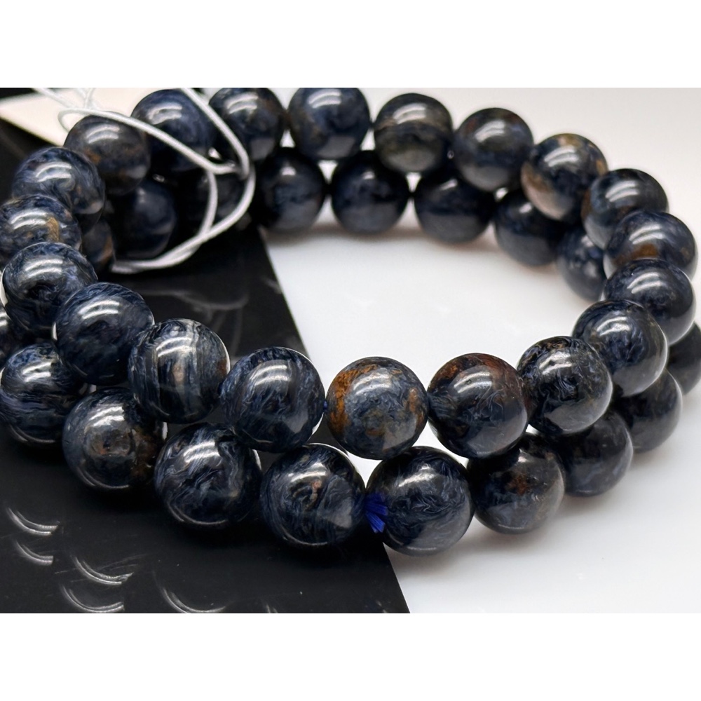 • Каменные бусины, Петерсит, синий, люкс, шарик гладкий, 10-10,5 мм, браслет, 20 бусины, длина нити 19 см