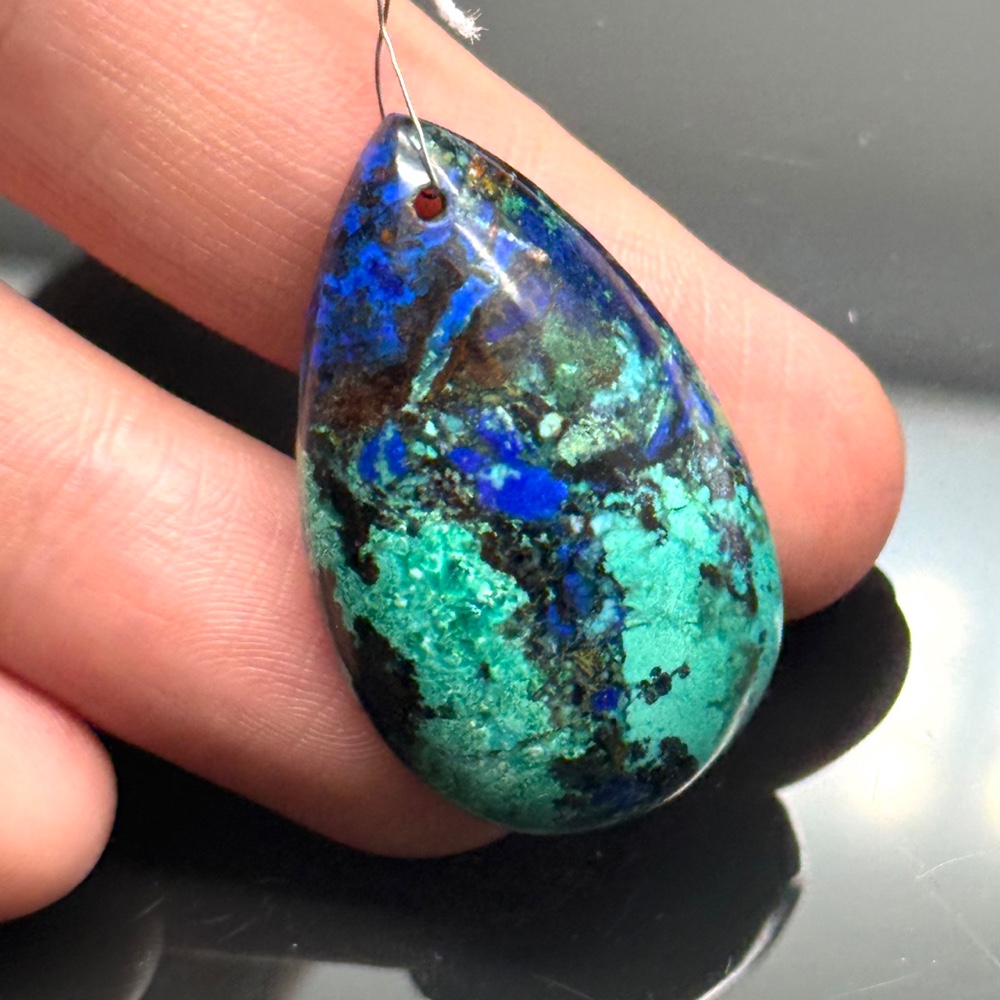 • Подвеска №6, Хризоколла с азуритом, люкс, капля, размер 35х21 мм, цена за 1 шт.