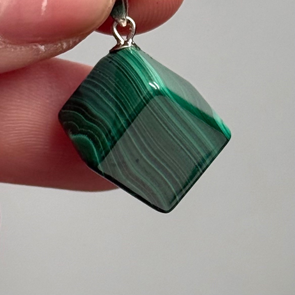 • Подвеска, Малахит (Конго), "Куб", SS 925, размер 12 мм, цена за 1 шт.