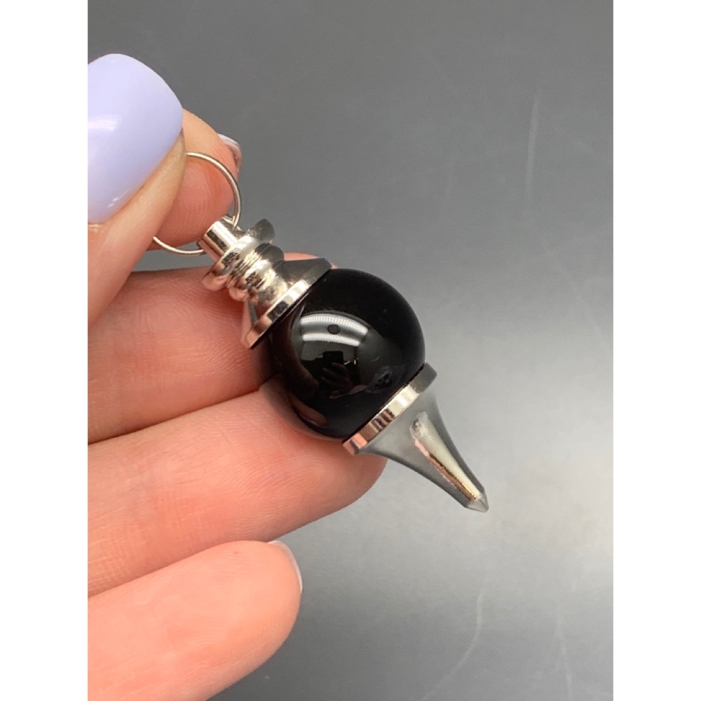 Подвеска, маятник биолокации, Агат черный, оникс, шар гладкий 17,5 мм, общий размер 40 мм, цена за 1 шт.